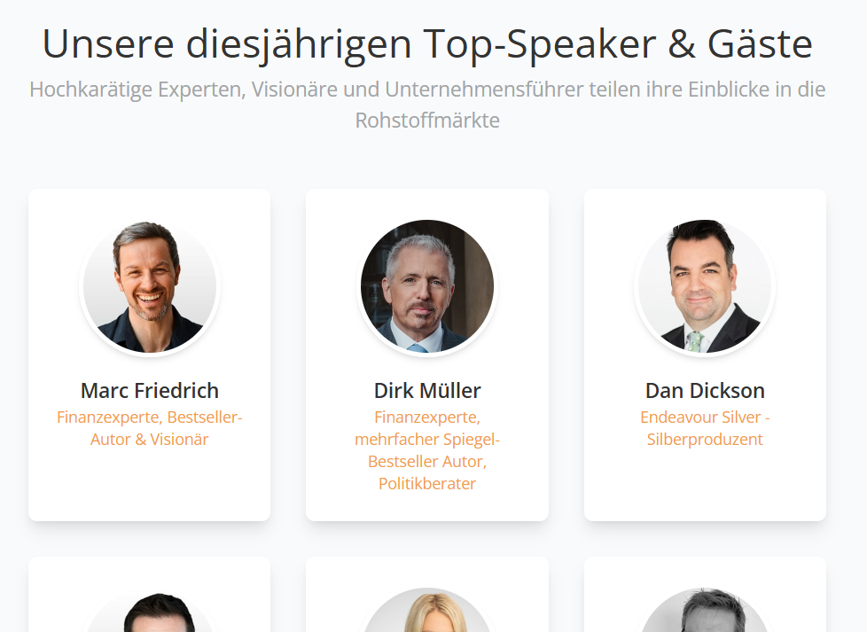 Also Herr Friedrich (Friedrich/Partner) und Herr Müller (Cashkurs) sponsern das auch. Die restlichen Speaker sind natürlich auch Sponsoren.